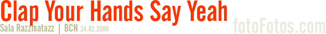 Como una mezcla de Yo La Tengo, The Feelies, Neutral Milk Hotel y Talking Heads, la música de Clap Your Hands Say Yeah suena extremadamente nueva, eufórica, elegante y nerviosa. Su indie rock melódico es exuberante y extremadamente más original que el de todos esos hypes que intentan ser los nuevos Velvet Underground. Tan auténticos y estetas como aquellos, dicen que sus conciertos son su punto fuerte. Si 2005 ha sido el año de The Arcade Fire, ya sabemos de quién será 2006. Sólo queda aplaudir. Yeah!
